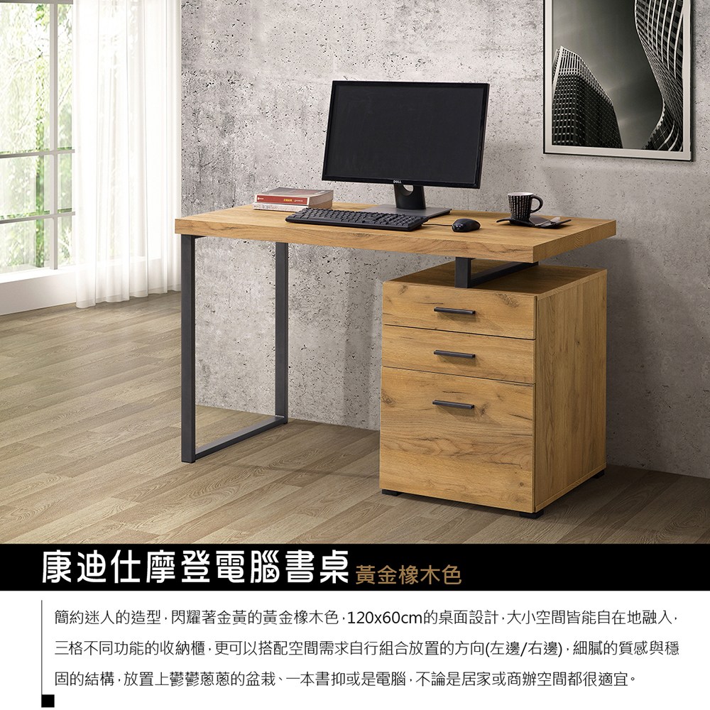 Boden-安格斯4尺四抽電腦書桌/工作桌-120x60x78cm