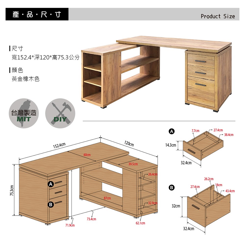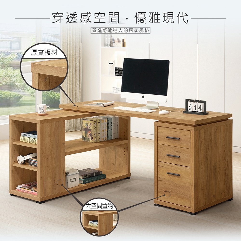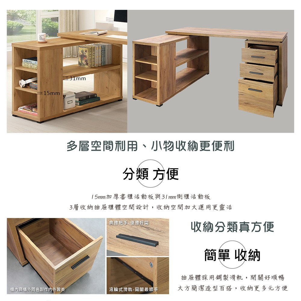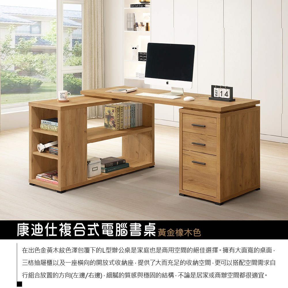康迪仕 複合式電腦書桌 辦公桌 電腦桌 黃金橡木色