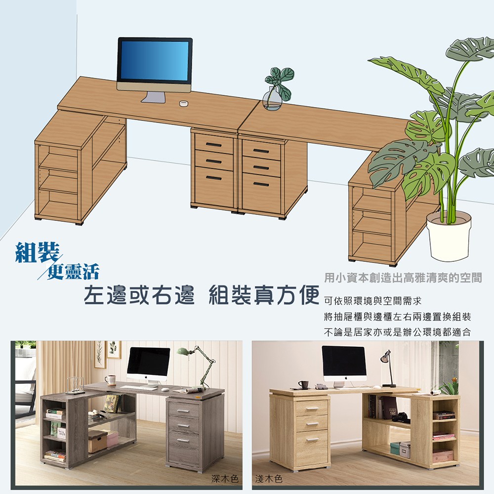 康迪仕複合式書桌 辦公桌 電腦桌 深木色