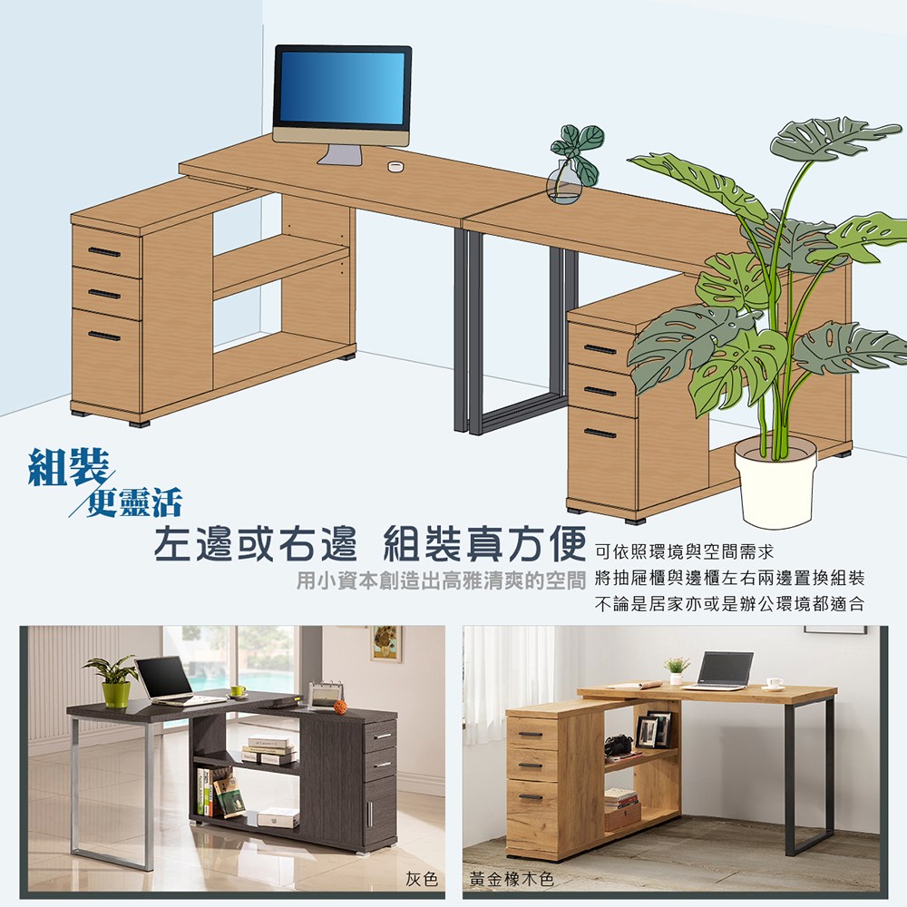 長側櫃+造型桌腳,可依使用習慣而相互換方向組裝。