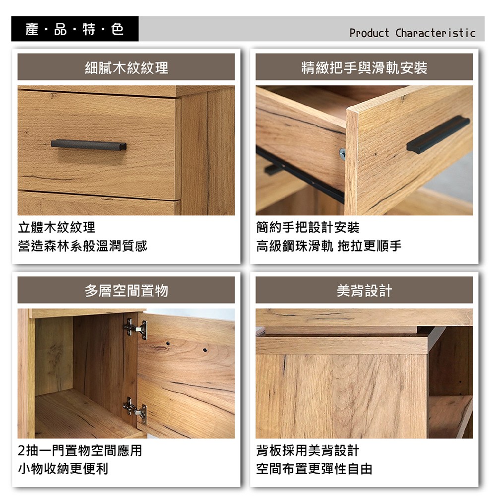 開放式側櫃,融合收納櫃及抽屜櫃功能,部分31mm加厚板材,加強整體結構穩固及承載力,結構更穩固。