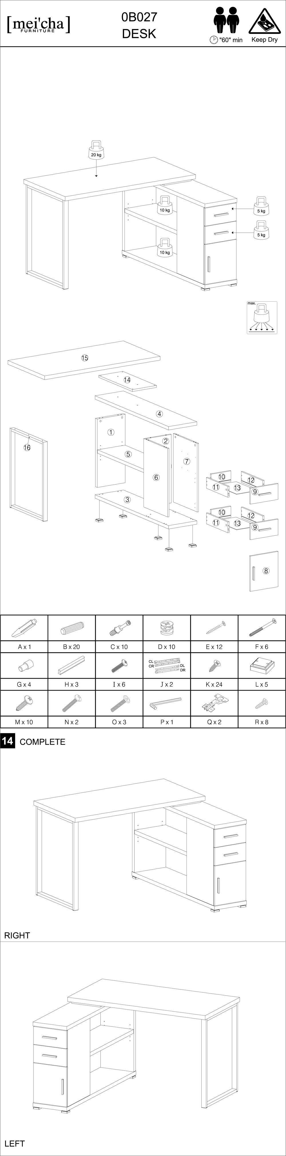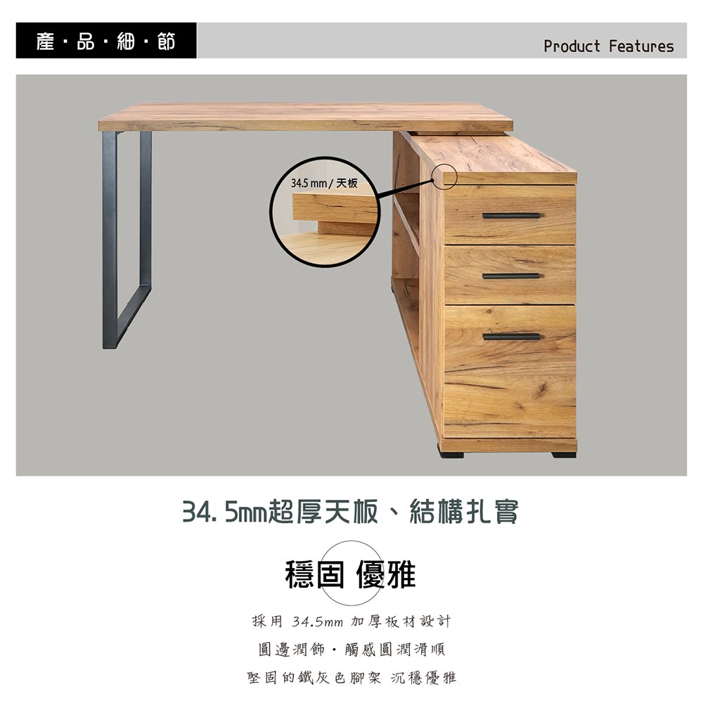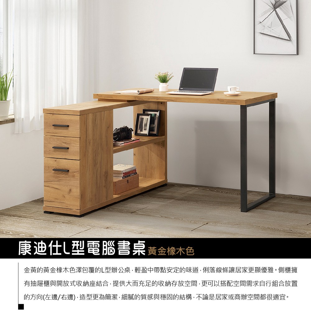 創立40年金商獎廠商所推出的現代板式D.I.Y組合傢俱(Knock-down furniture)-康迪仕(COMDESK)系列,採E1環保健康板材製造,L型款電腦書桌,超大桌面、下方側邊開放式收納空間與抽屜的搭配,為書桌發揮最大功能。