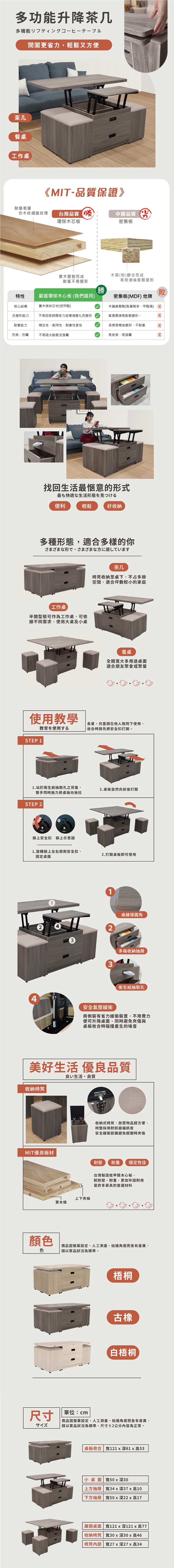 傢俱工場-圓州 緩衝多功能升降茶几/餐桌/書桌梧桐