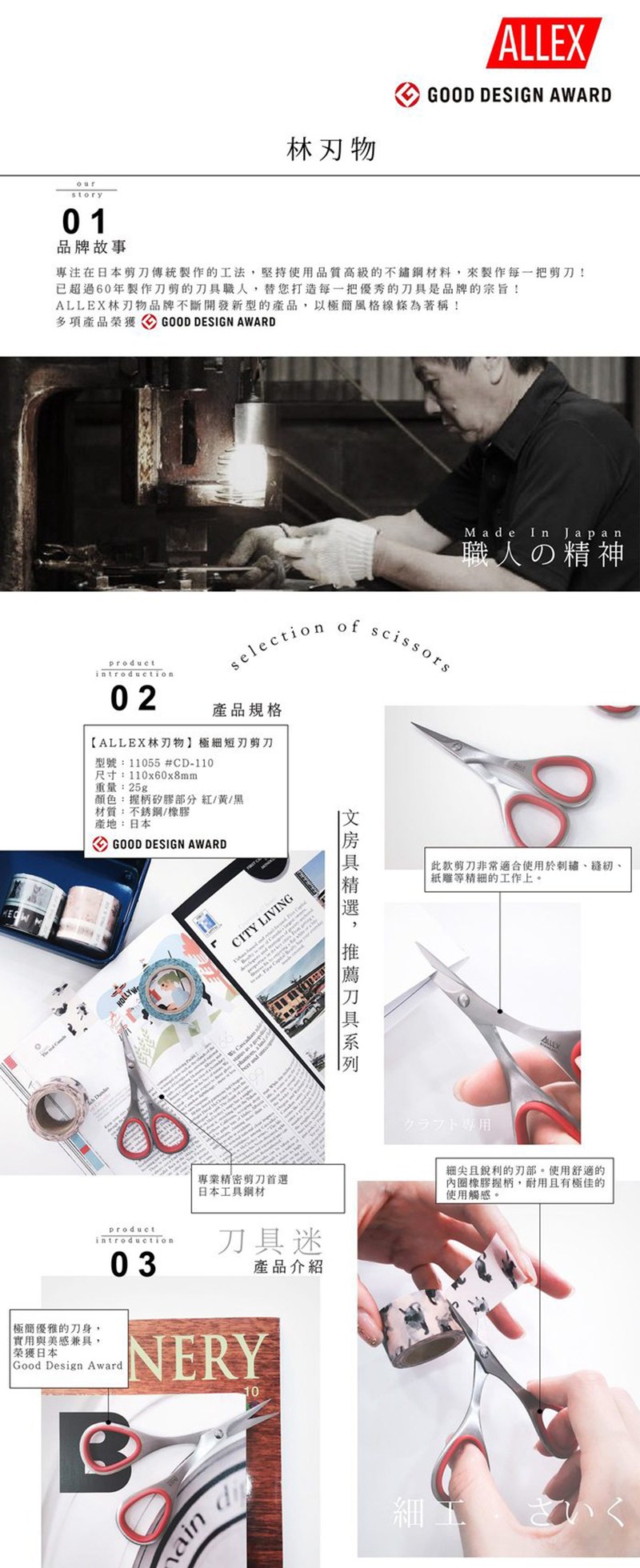 【ALLEX林刃物】Slim極細剪刀(迷你) 100-不沾膠 紅