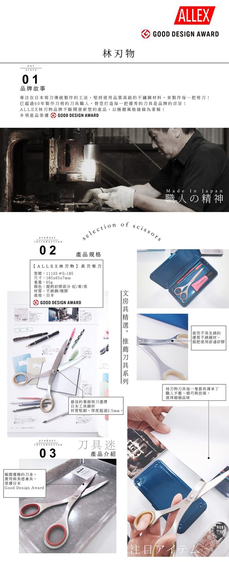 【ALLEX林刃物】事務用長刃剪刀185mm-紅