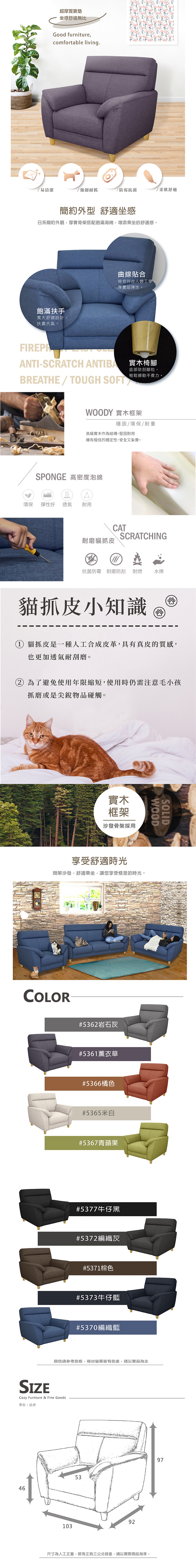 Homelike 喜家居單人座貓抓皮沙發(2036)