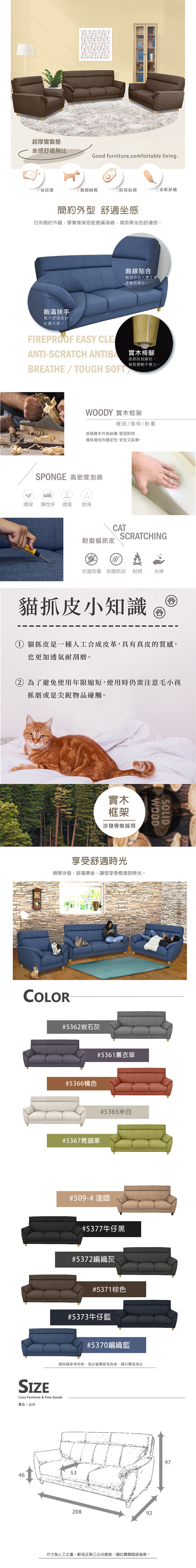 【UHO】F10-無扶手 貓抓皮三人沙發(運費另計)雙色