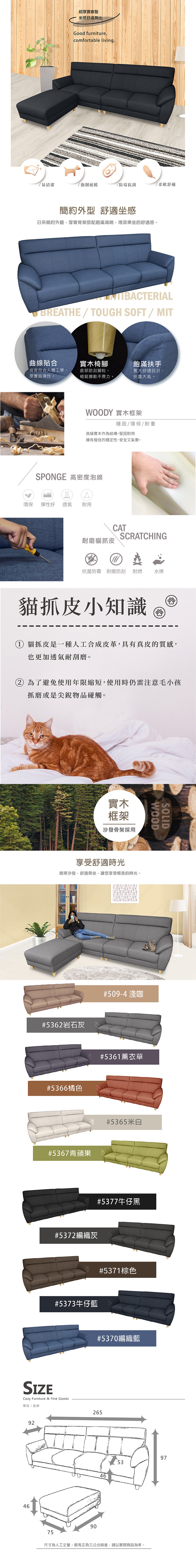 【本木】安格斯 舒適護腰耐磨貓抓皮2人坐沙發牛仔藍#70