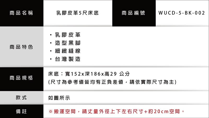 【UHO】諾克斯-乳膠皮革床底-6尺雙人加大黑色