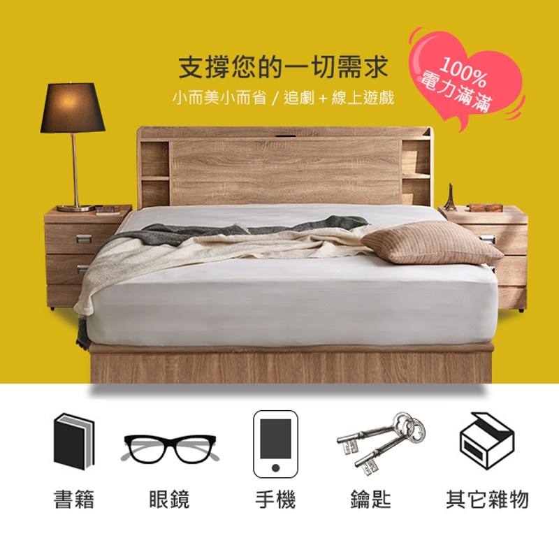 【IHouse】日系夢幻100 夜燈插座 房間2件組(床片+強化底)-雙人5尺