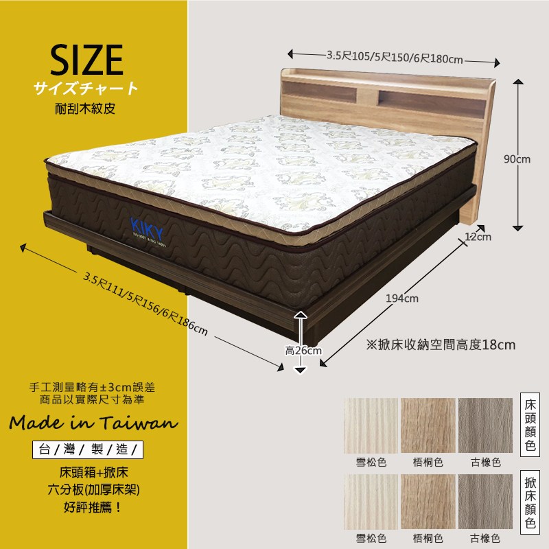 【KIKY】紫薇可充電收納二件床組 雙人加大6尺(床頭片+掀床底)雪松色床頭+白橡色掀床