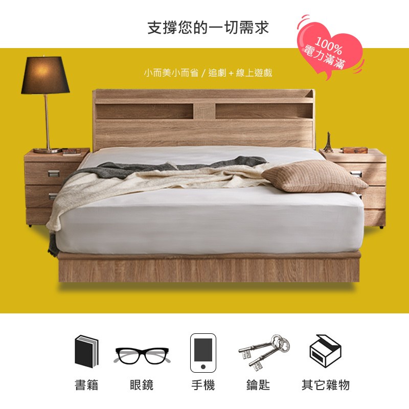 【IHouse】日系夢幻100 夜燈插座 房間2件組(床片+強化底)-雙人5尺