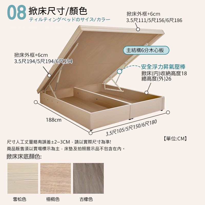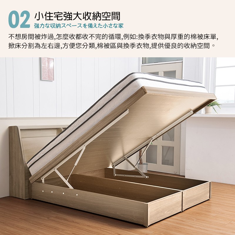 雪松色床頭+白橡色掀床