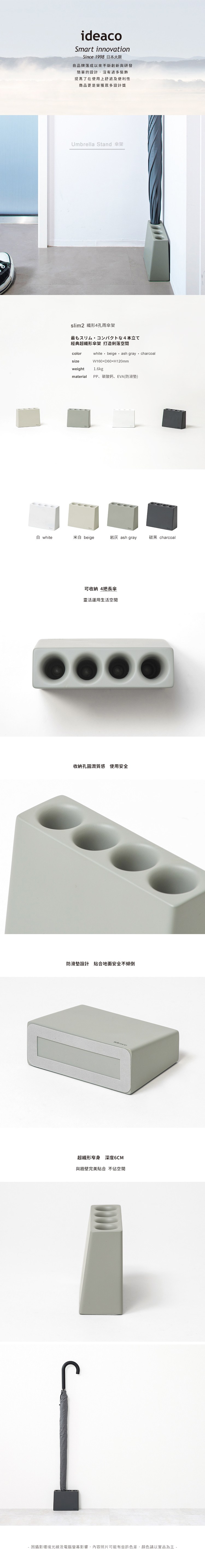 【日本ideaco】纖形4孔雨傘架-白
