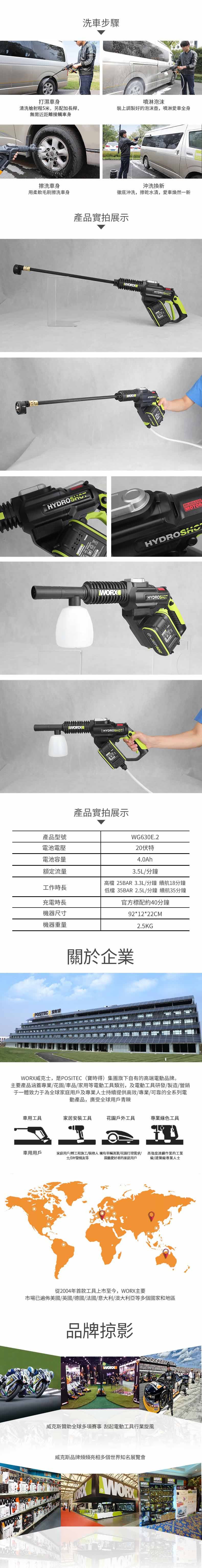 WORX 20V 無刷高壓清洗機4.0ah WU630