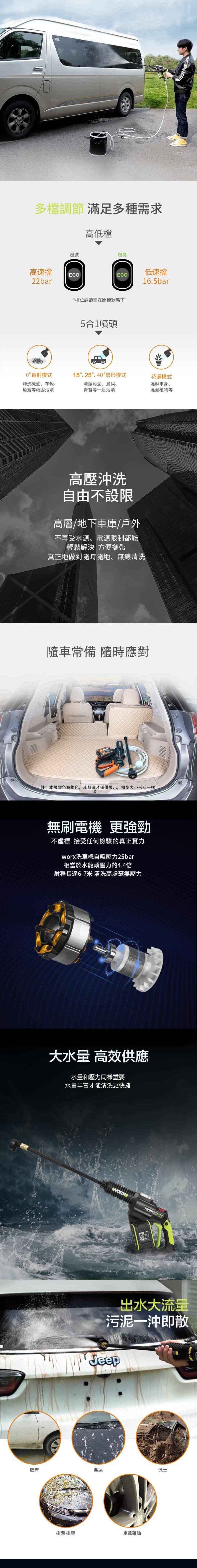 Worx 20V 無刷高壓清洗機4.0ah WU630