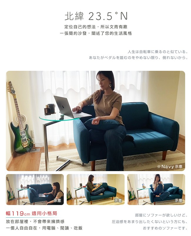 【C'est Chic】Latitude 北緯23.5 °N布質沙發(Green)。定位自己的想法,所以文青有趣。一張簡約的沙發,闡述了您的生活風格。適合一個人,或兩人世界的部屋,不會帶來擁擠感。不論窩在一起瘋狂追劇,或是談天說地聊八卦,還是整天慵懶的使用手機,這款大小適宜的沙發,非常適合您擁有。