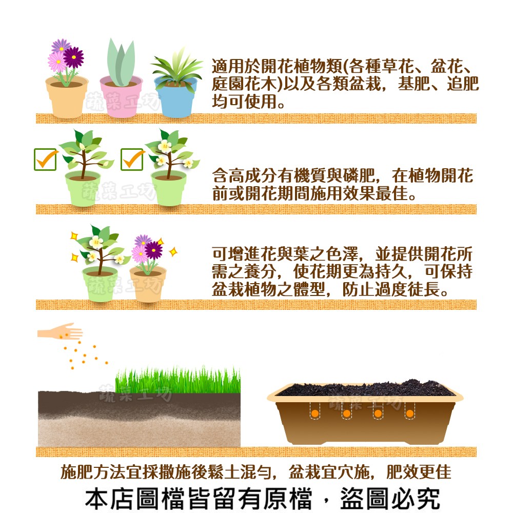2.含高成分有機質與磷肥,在植物開花前或開花期間施用效果最佳。