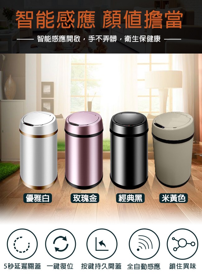 JAH智能感應垃圾桶 15L垃圾筒 感應垃圾桶 電動垃圾桶 大容量垃圾筒-JM
