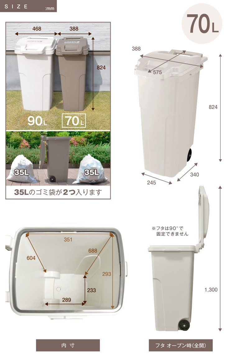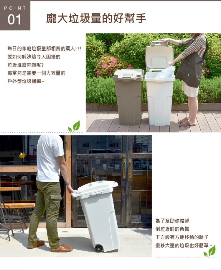 機能型戶外垃圾桶 90L - 二色 白色