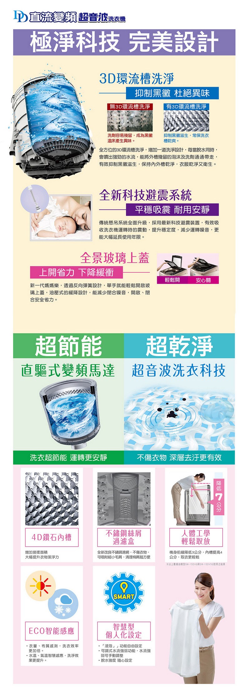 SANLUX三洋18公斤DD直流變頻超音波單槽洗衣機 SW-19DV10~含基本安裝+舊機回收