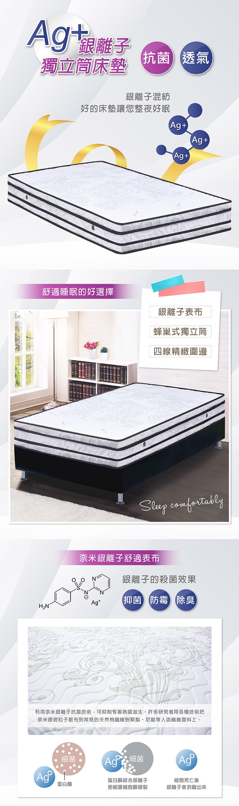 ASSARI-舒眠高彈力支撐四線獨立筒床墊-單大3.5尺單大3.5尺