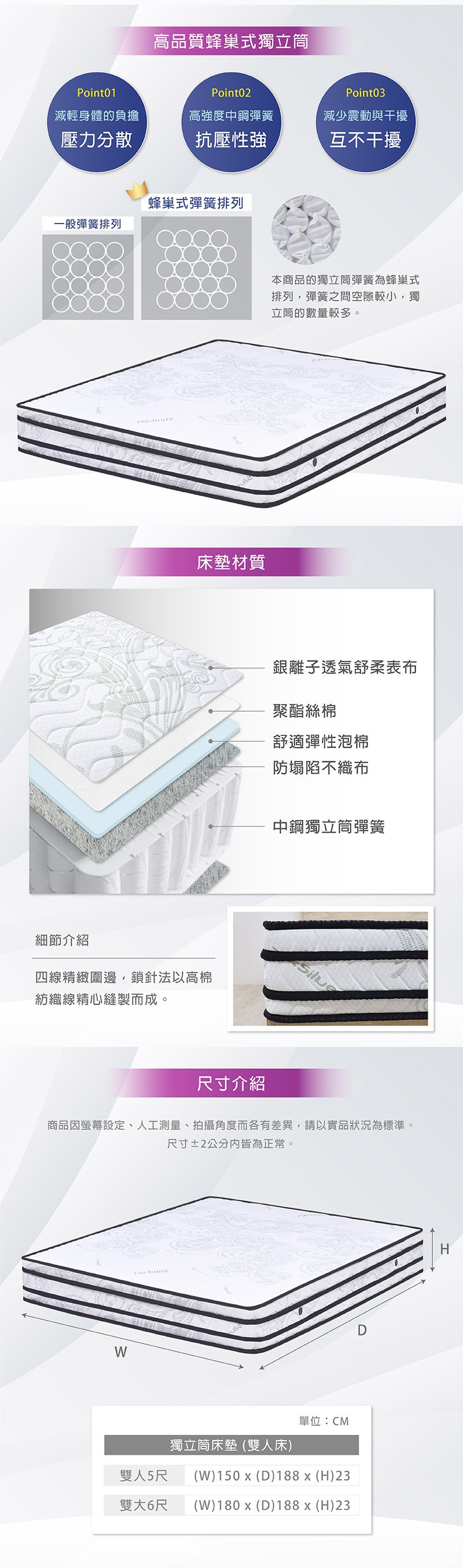 IHouse-晚安 蜂巢四線獨立筒床墊(偏軟) 單大3.5尺單大3.5尺