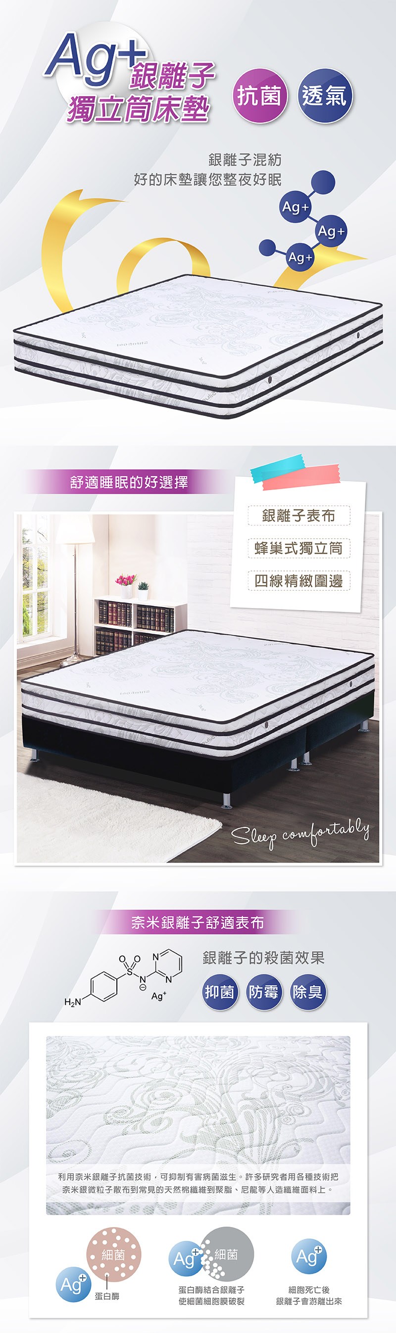 Albert艾柏 抗菌透氣3.5尺單人獨立筒床墊(3.5x6.2尺)-105x188x25cm