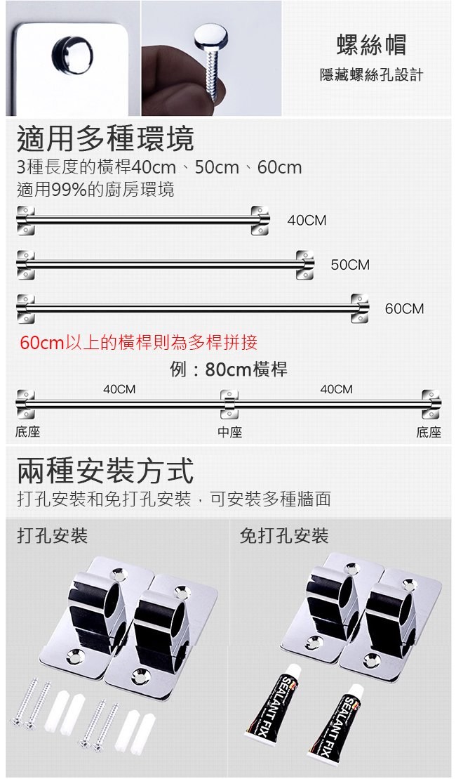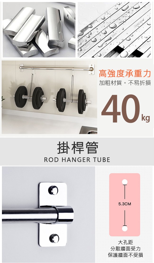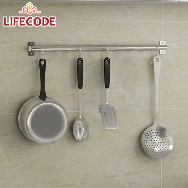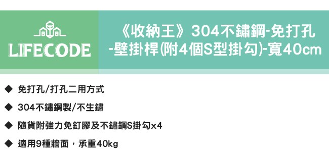 秘寶在這LIFECODE收納王304不鏽鋼-壁掛桿-附S掛勾*4-寬40cm