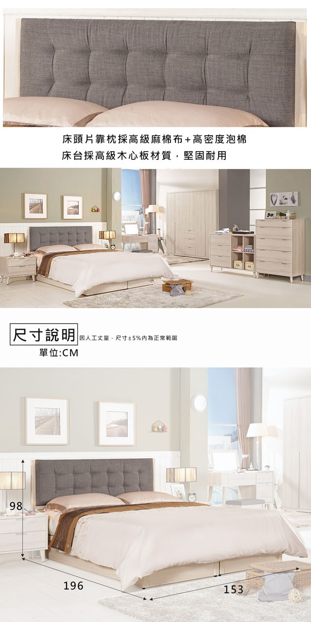 Homelike 喜家居雙人加大6尺六抽屜床組-原木色(2531)