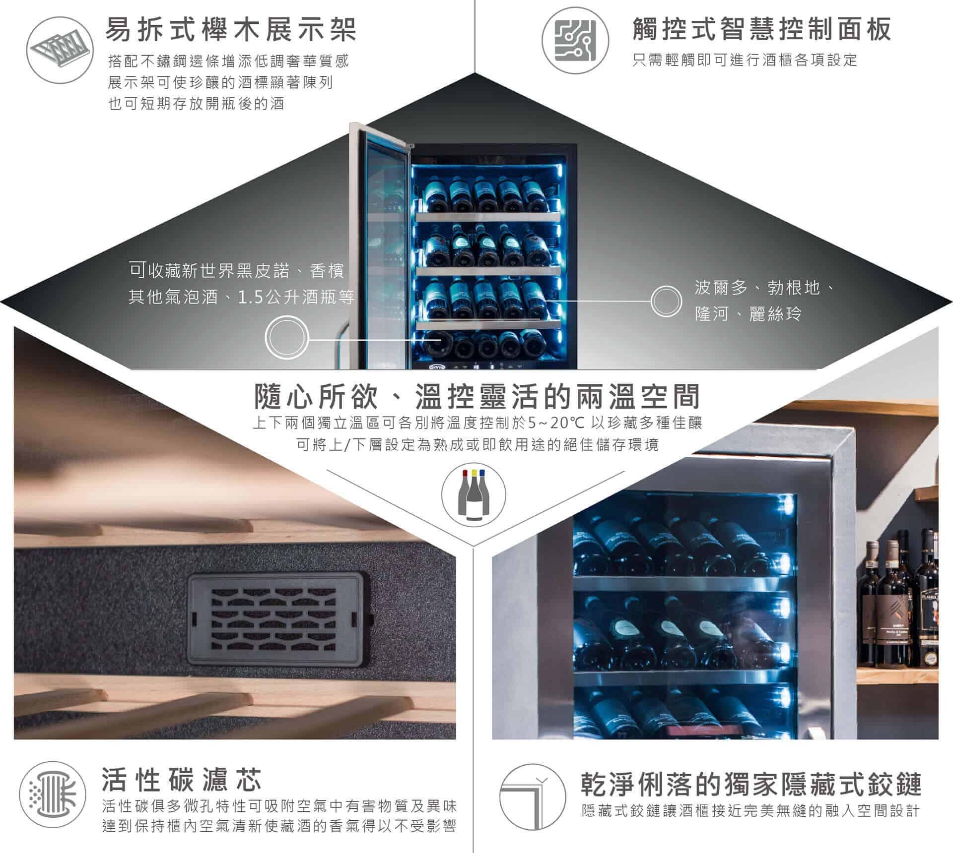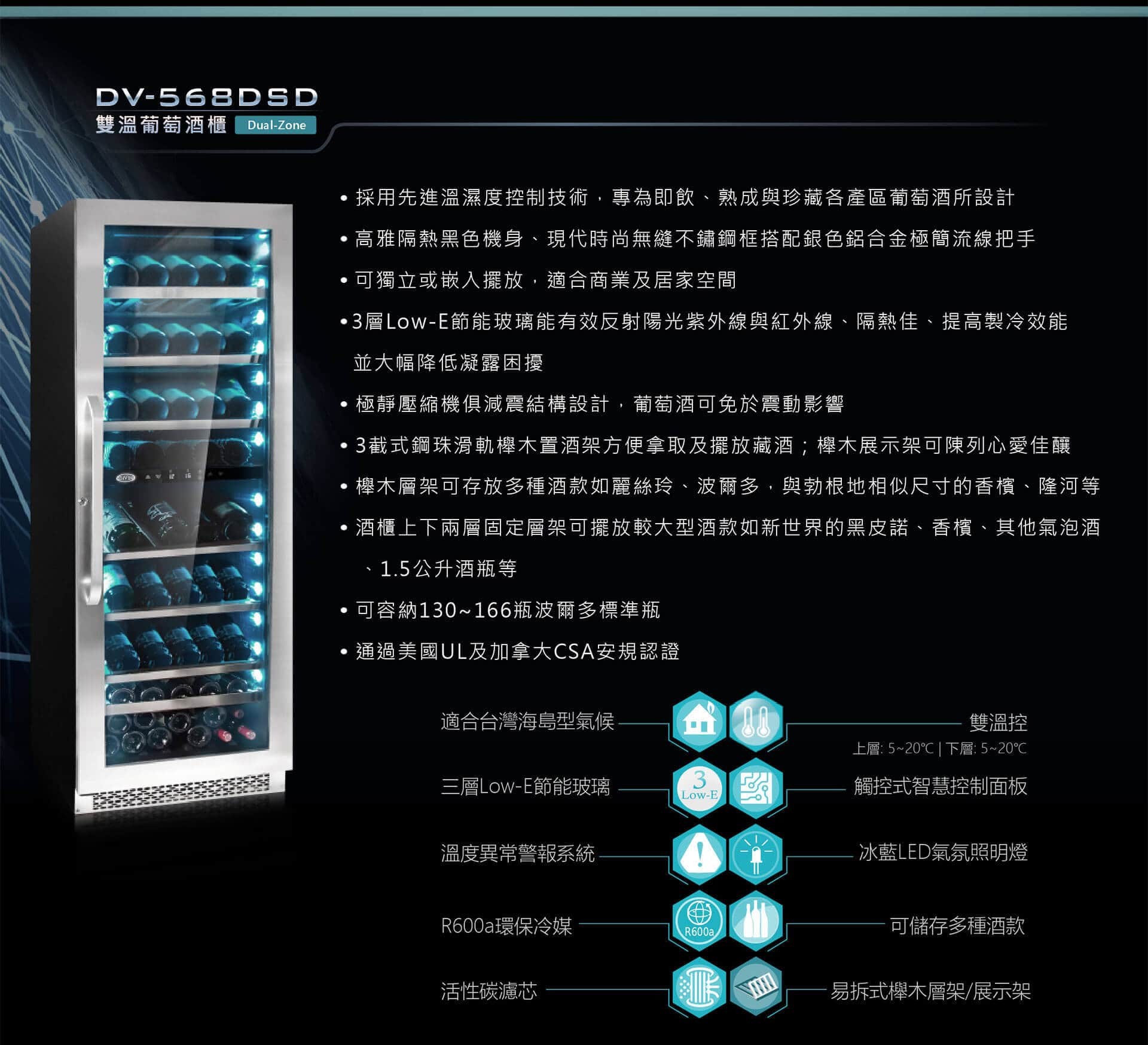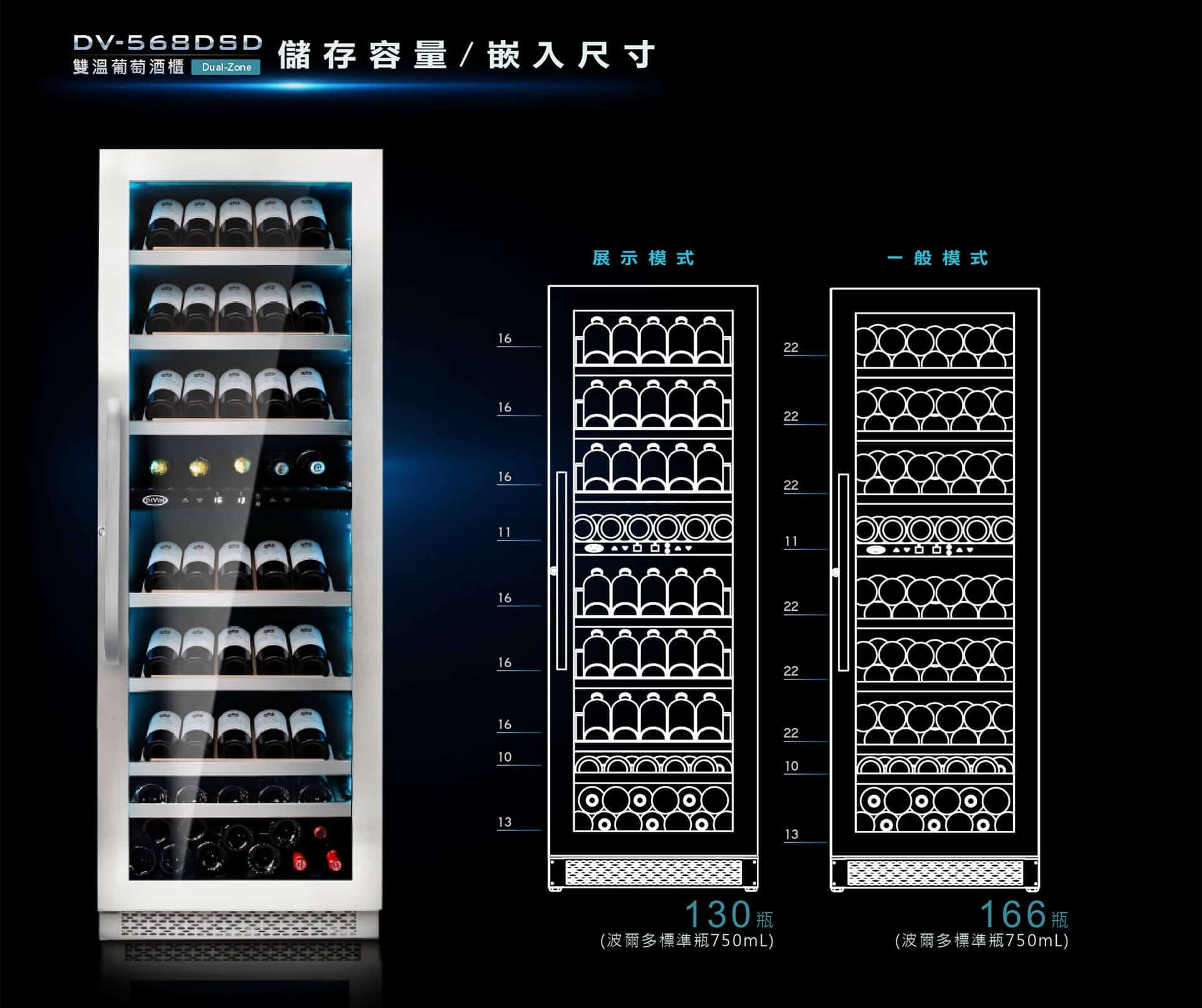 DIVIN DV-568DSD 166瓶 單門斜放展示雙溫葡萄酒櫃