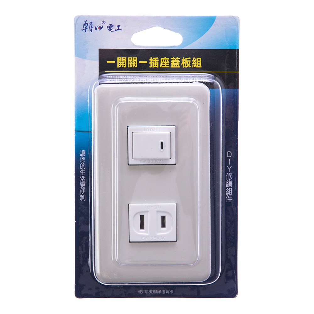 【朝日電工】 DS-1K1S 工業風白鐵單開關單插座組