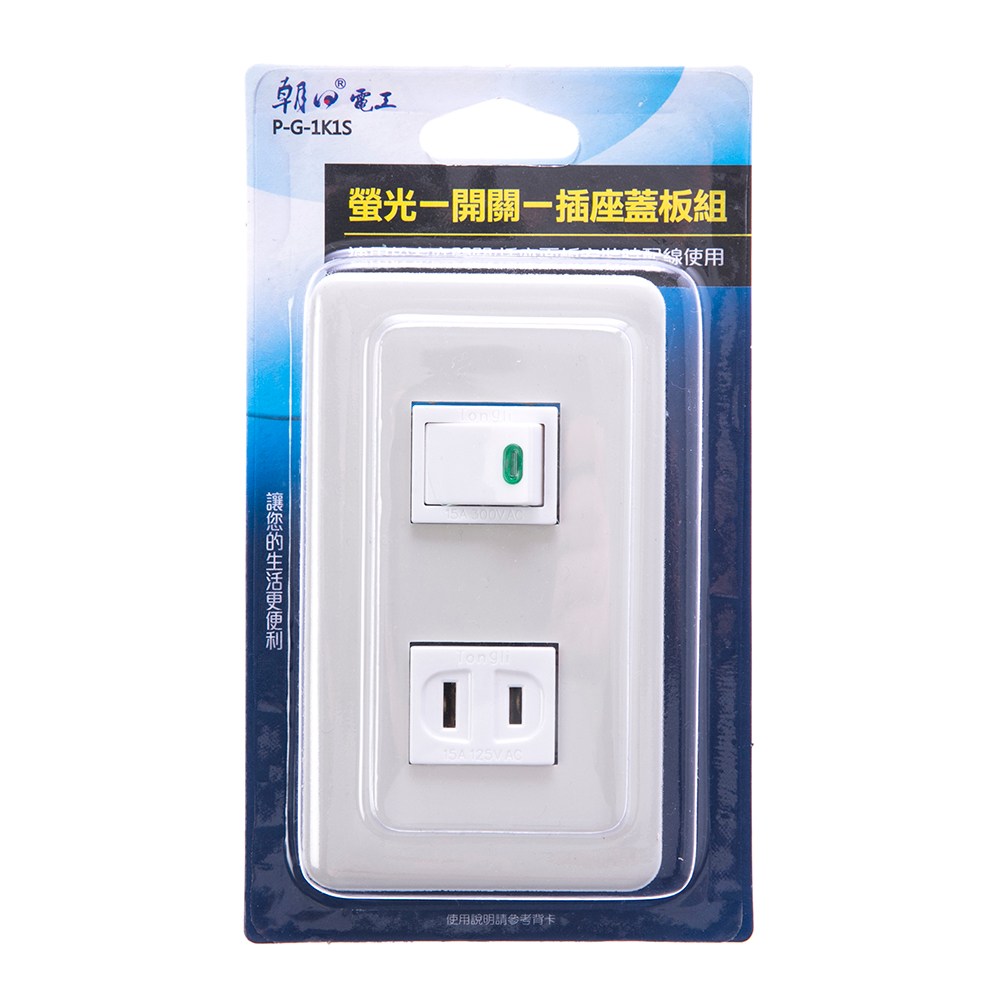 【朝日電工】 TL-1S1H+B 雅白大型夜光單開單附接地插座明盒組