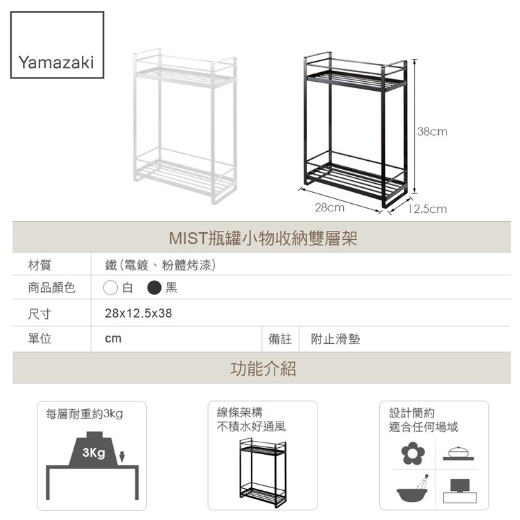 日本【YAMAZAKI】MIST瓶罐小物收納雙層架(黑)