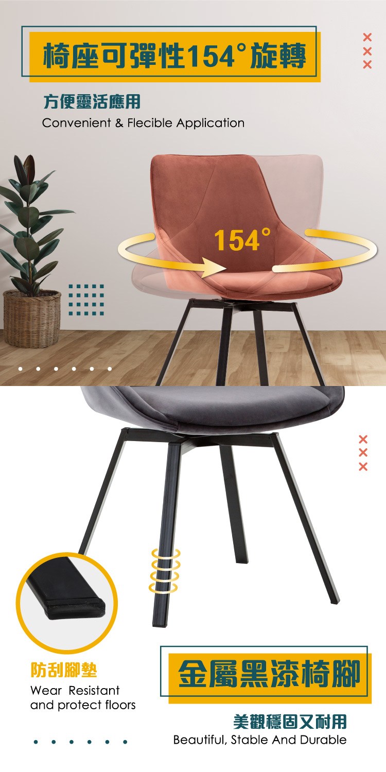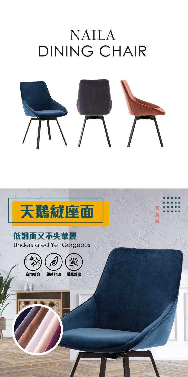 [E-home]Naila奈拉旋轉絨布餐椅,典雅又現代的新潮流,完美時尚,為居家布置增添一件唯美的作品。