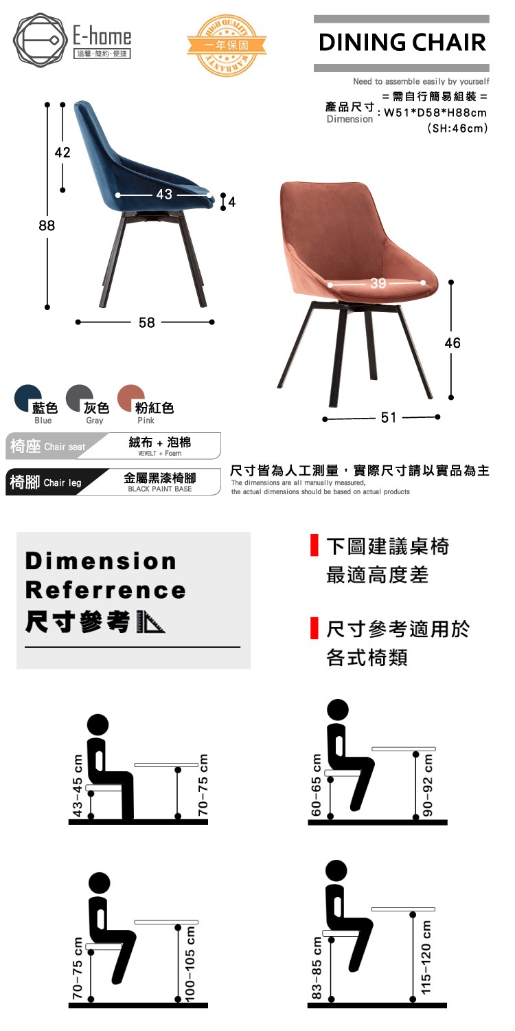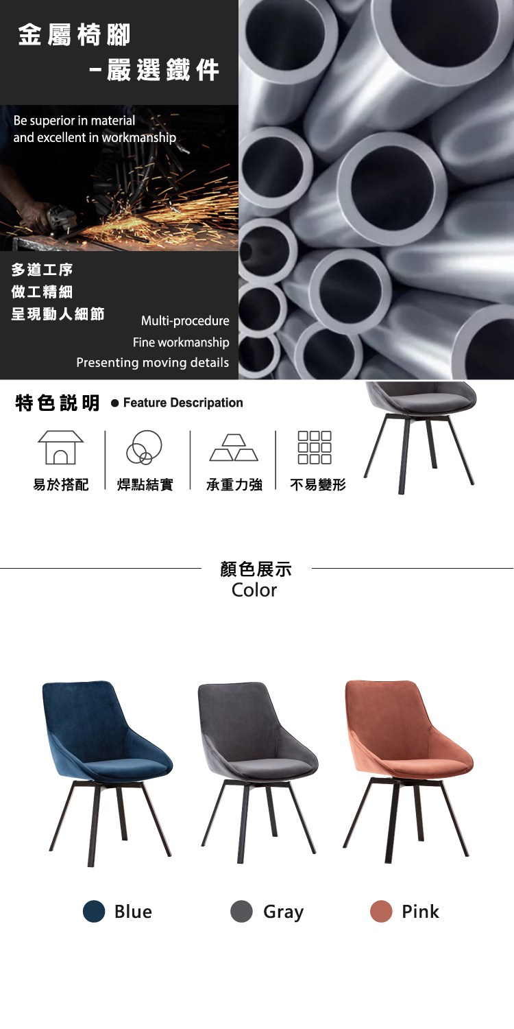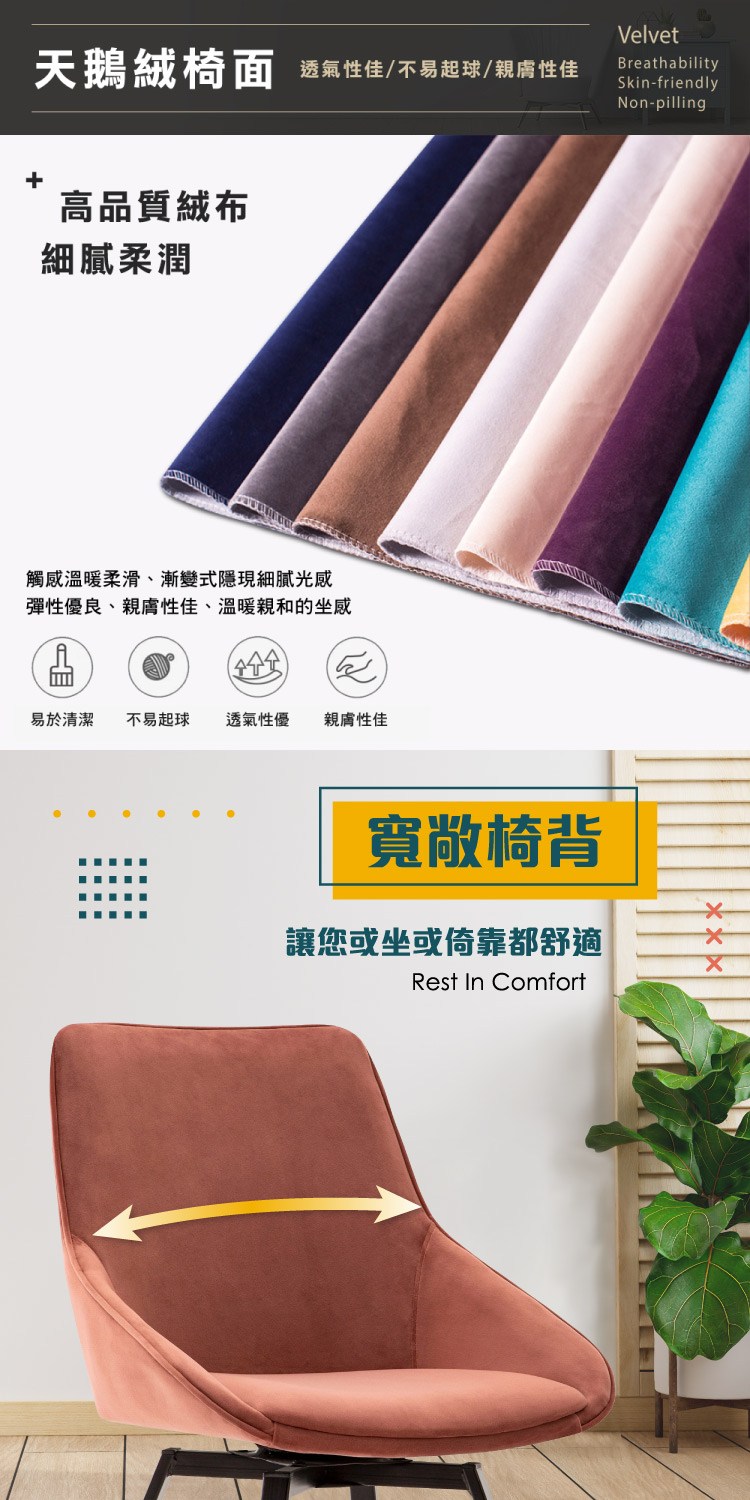[E-home]Naila奈拉旋轉絨布餐椅,典雅又現代的新潮流,完美時尚,為居家布置增添一件唯美的作品。