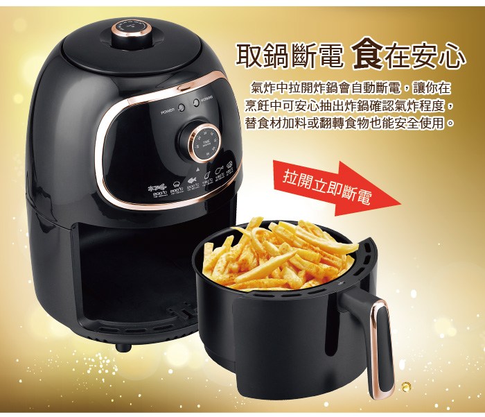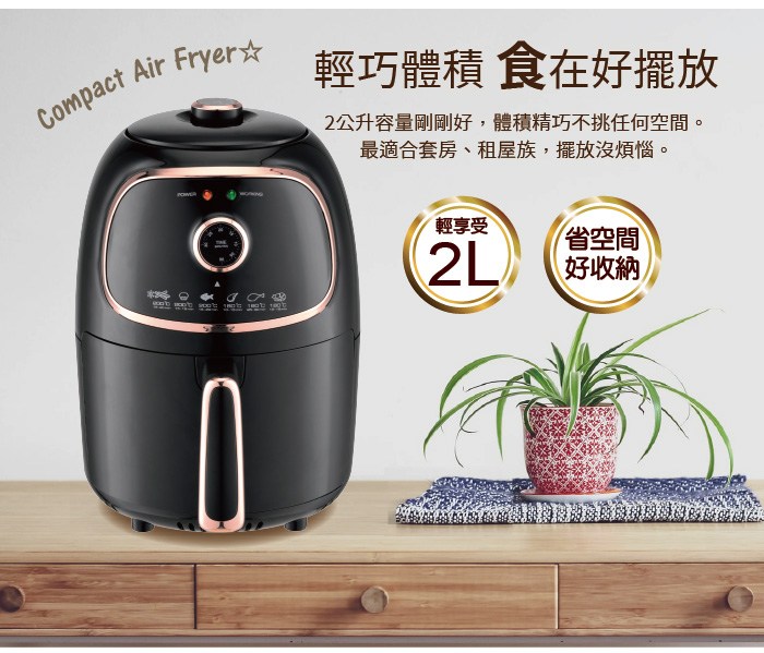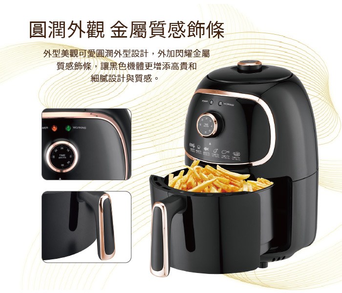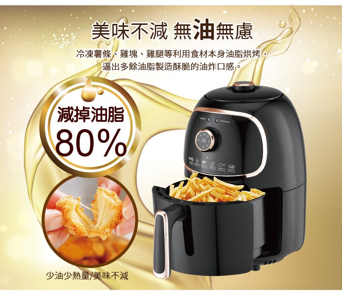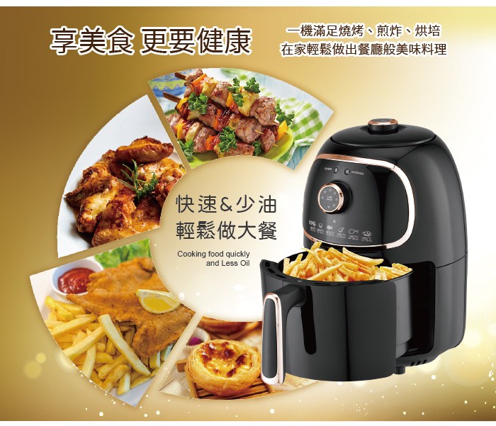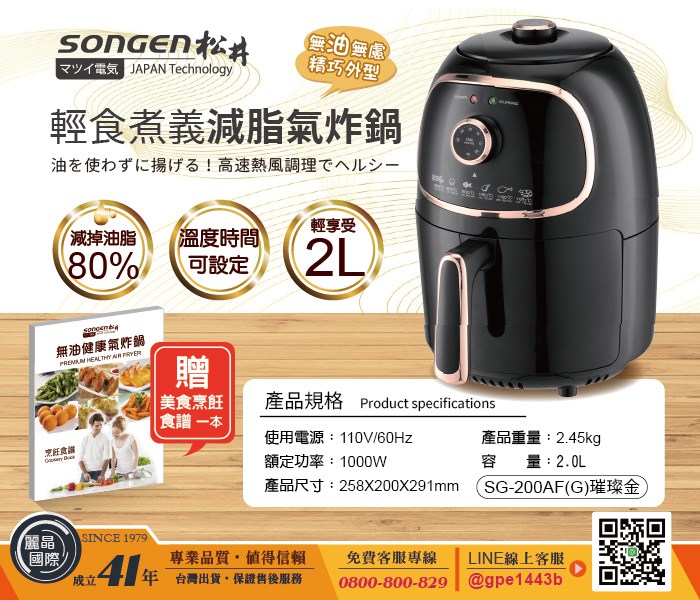 SOnGEn 松井 輕食煮義減脂美食氣炸鍋 無油煙 時間溫度好設定 最高200℃/最長30分 2.0L SG-200AF 璀璨金