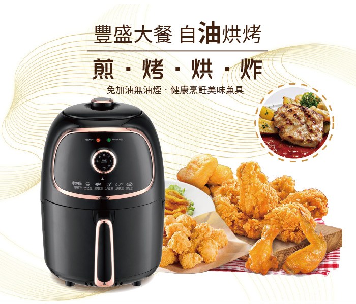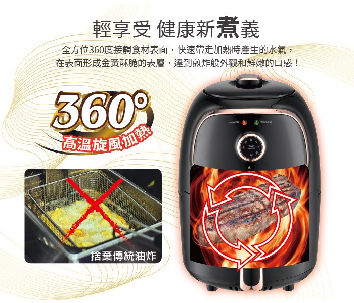 HYD 品宅趣 經典氣炸鍋 1000W 1.8L 360°零死角熱循環 110V 配隔油盤 D-552A 白色