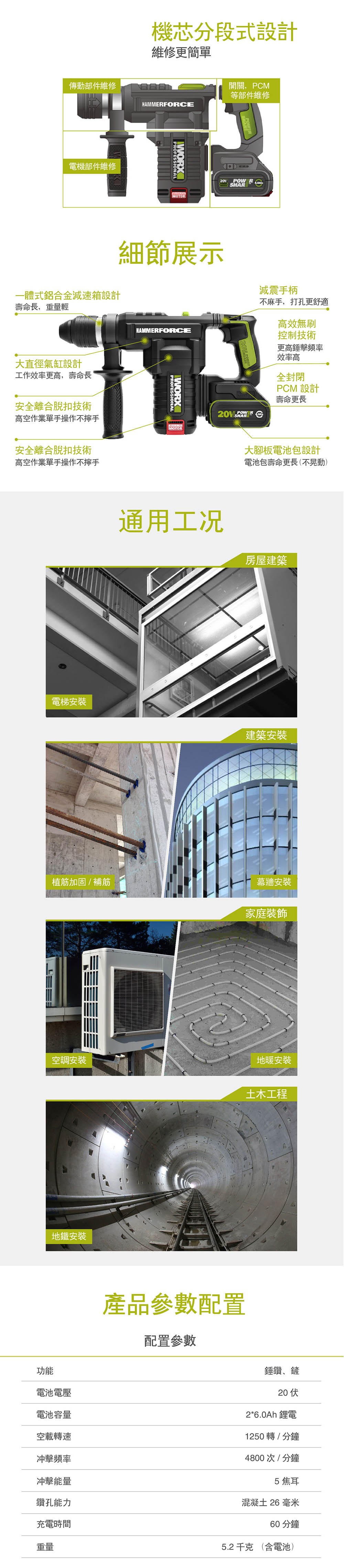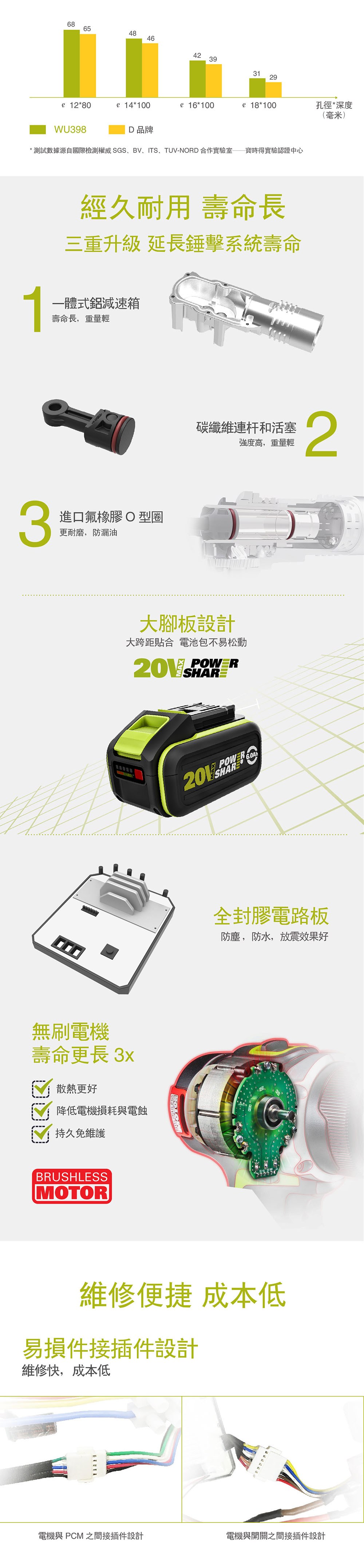 WORX 20V 26mm無刷電錘6.0ah*2 WU399