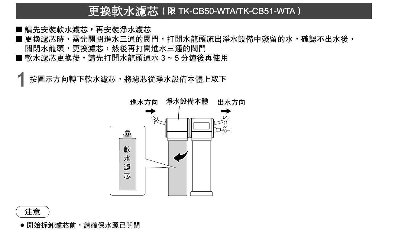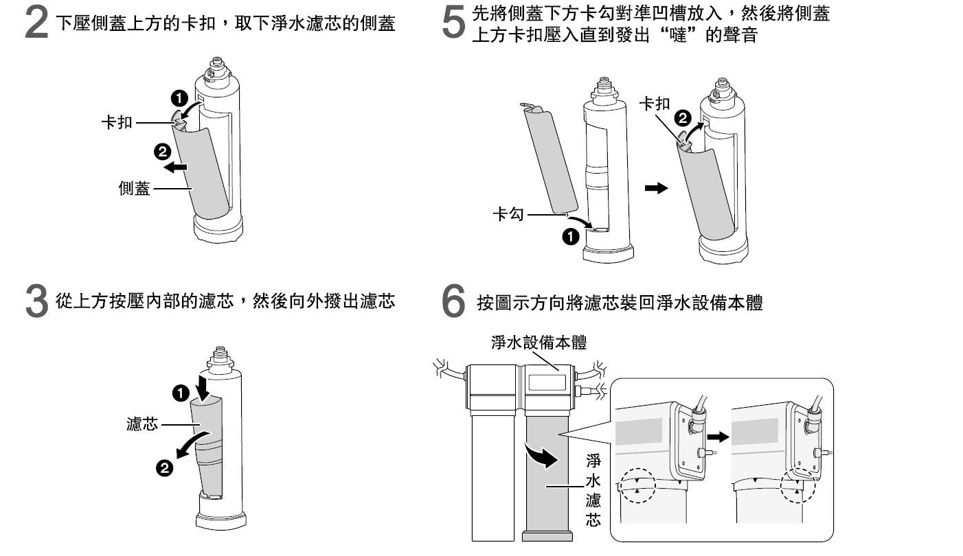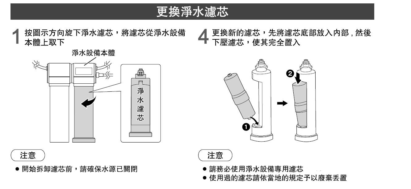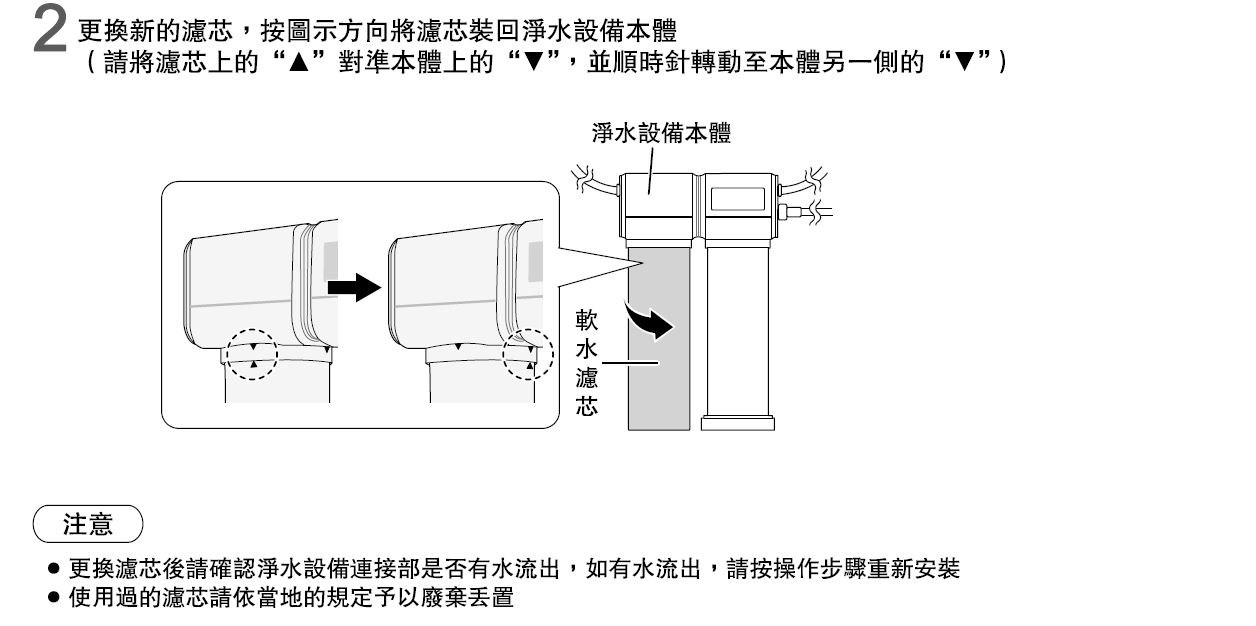 ♦更換濾芯時,請勿將本體倒置(否則本體內部會浸水)