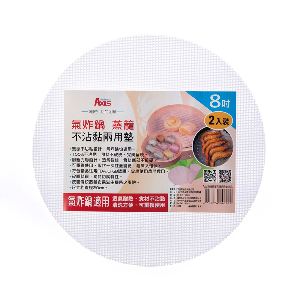 Axis氣炸鍋蒸籠不沾黏兩用墊8吋 2入