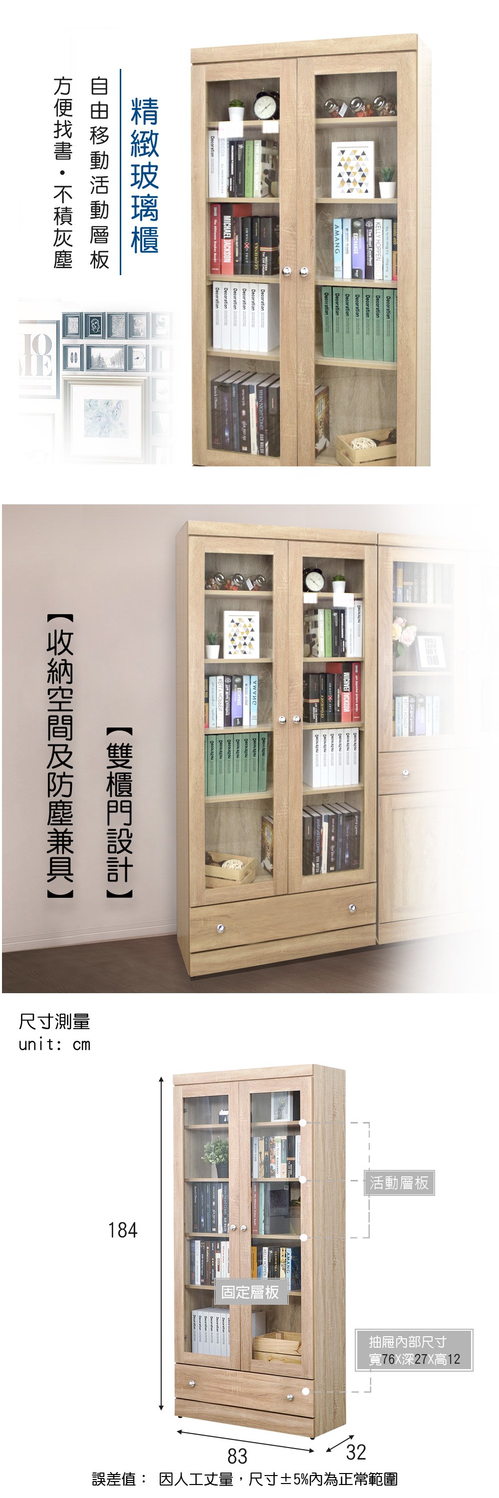 直人木業-DORIS現代風下抽玻璃高被櫥書櫃80公分