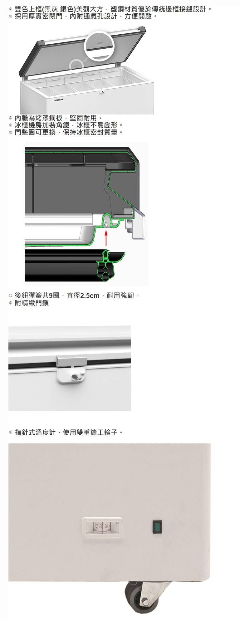 ◆使用高效壓縮機及超厚保溫壁,有效節能降耗。