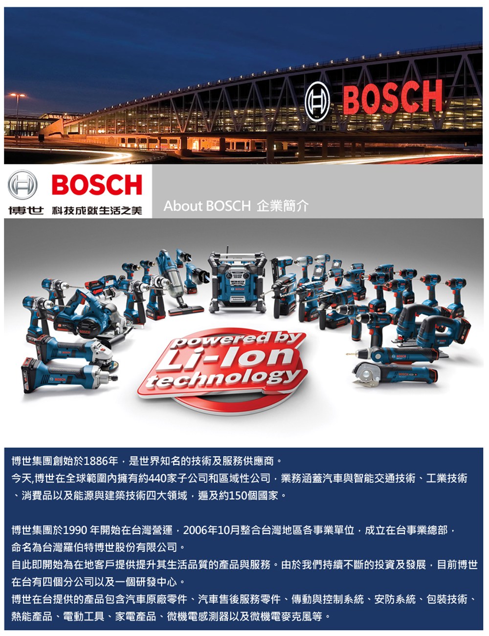 BOSCH,電動工具、專業配件、測量儀器的領導者,憑藉創新滿足高效與耐久的使用需求。