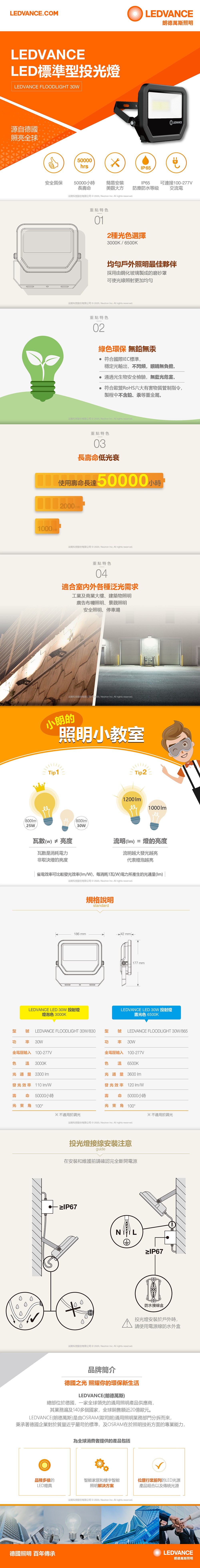 OSRAM 歐司朗 LED30W 277V 投光燈 IP65 晝白色 燈泡色(3000K) 1個