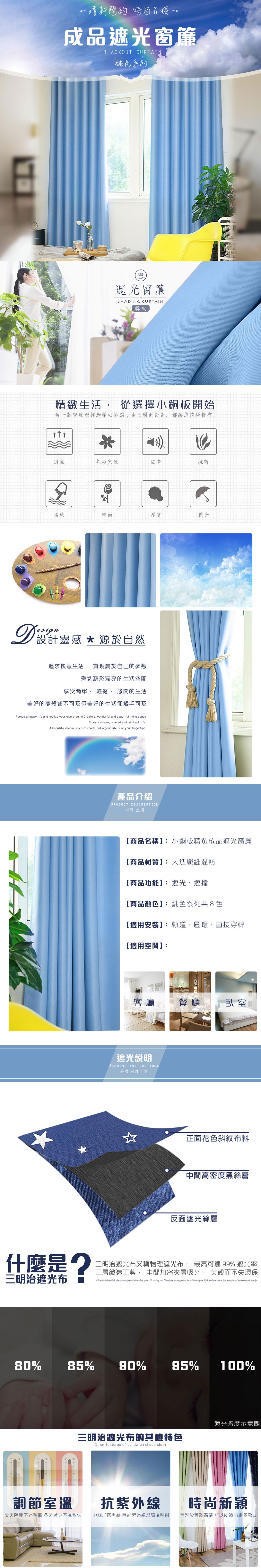 莫菲思 無紗蒲公英遮光窗簾200x165