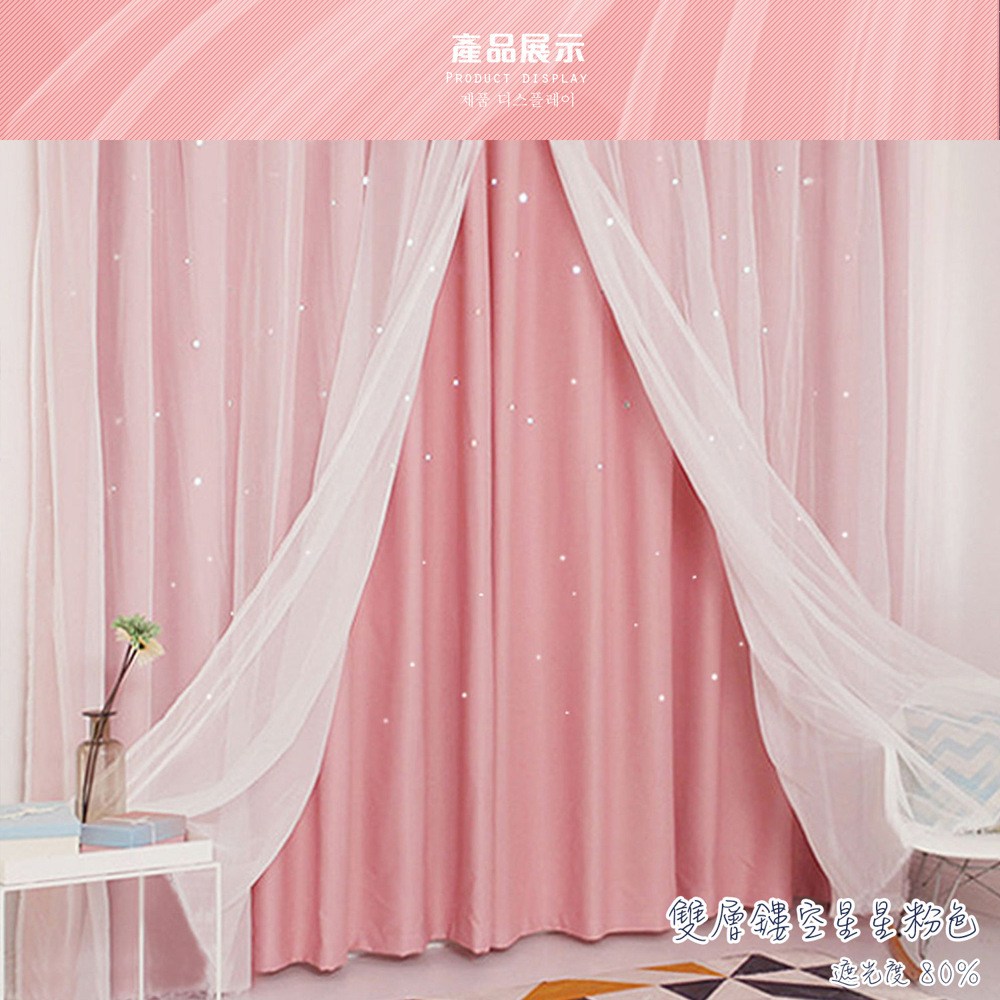 網紅款窗簾遮光ins少女心臥室雙層鏤空星星掛鉤式北歐簡約遮陽布