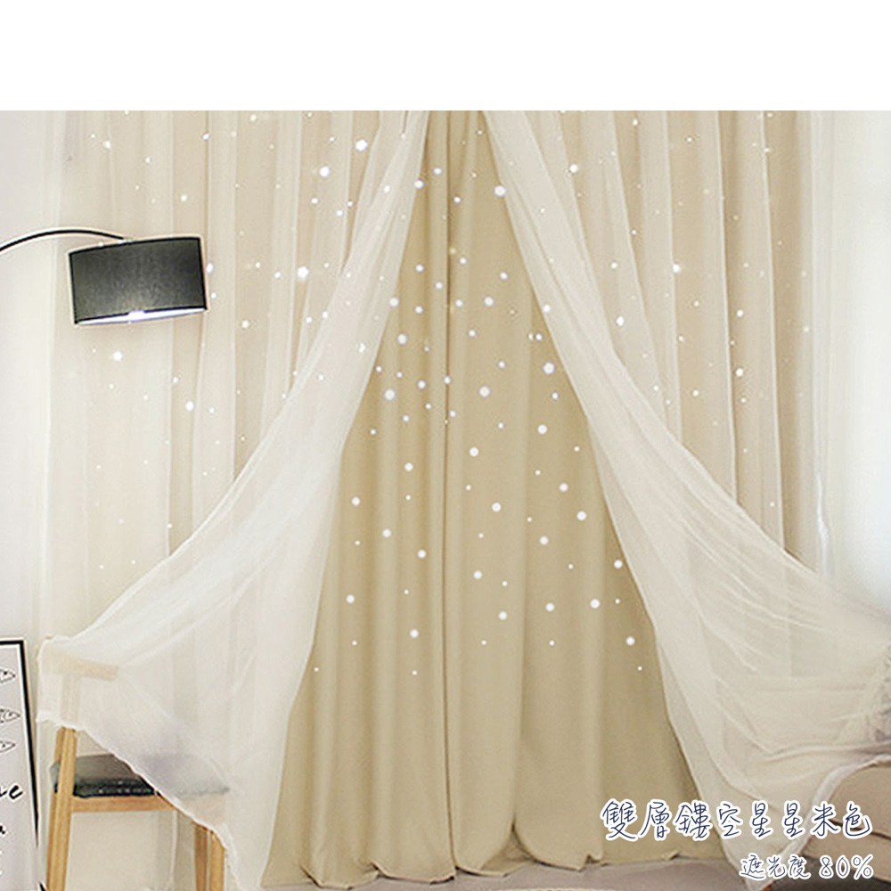 【小銅板】雙層浪漫白紗鏤空星星窗簾-單片寬200*高270-1片入米色
