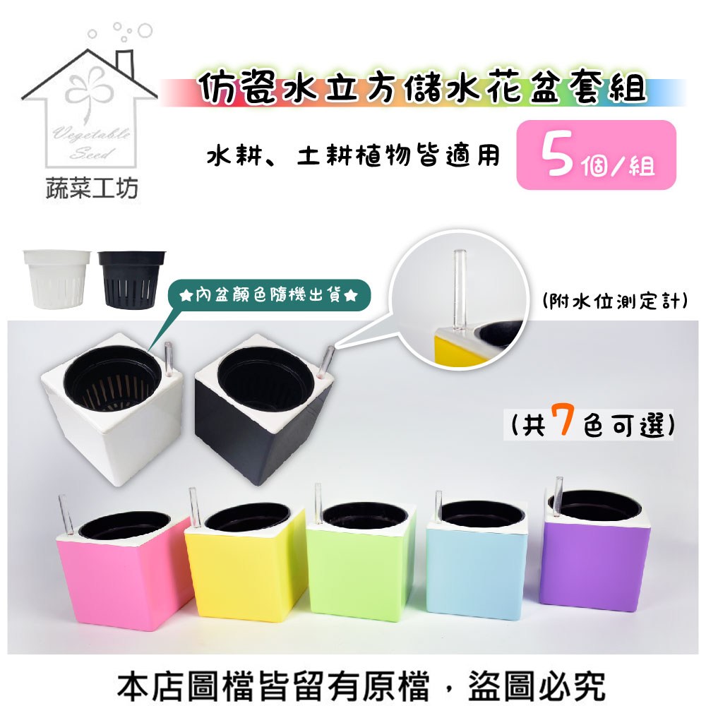 仿瓷水立方儲水花盆套組-5個/組(附水位測定計)(共7色可選)