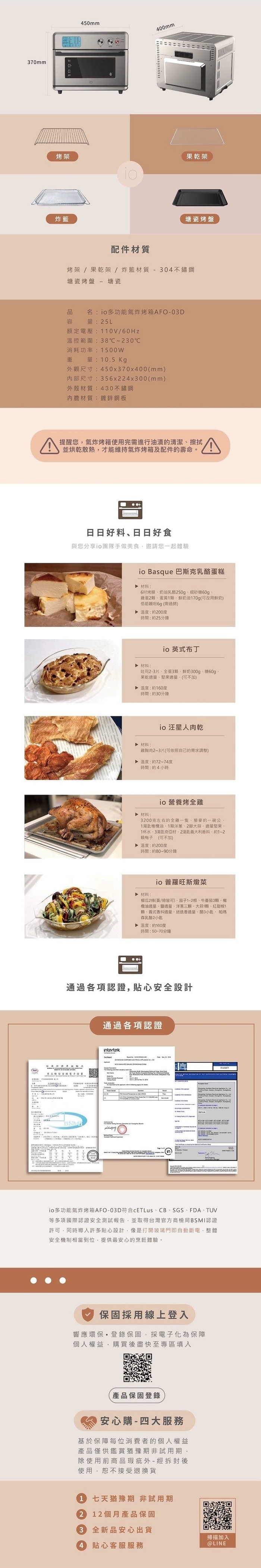 io 多功能氣炸烤箱 AFO-03D NEW 25L